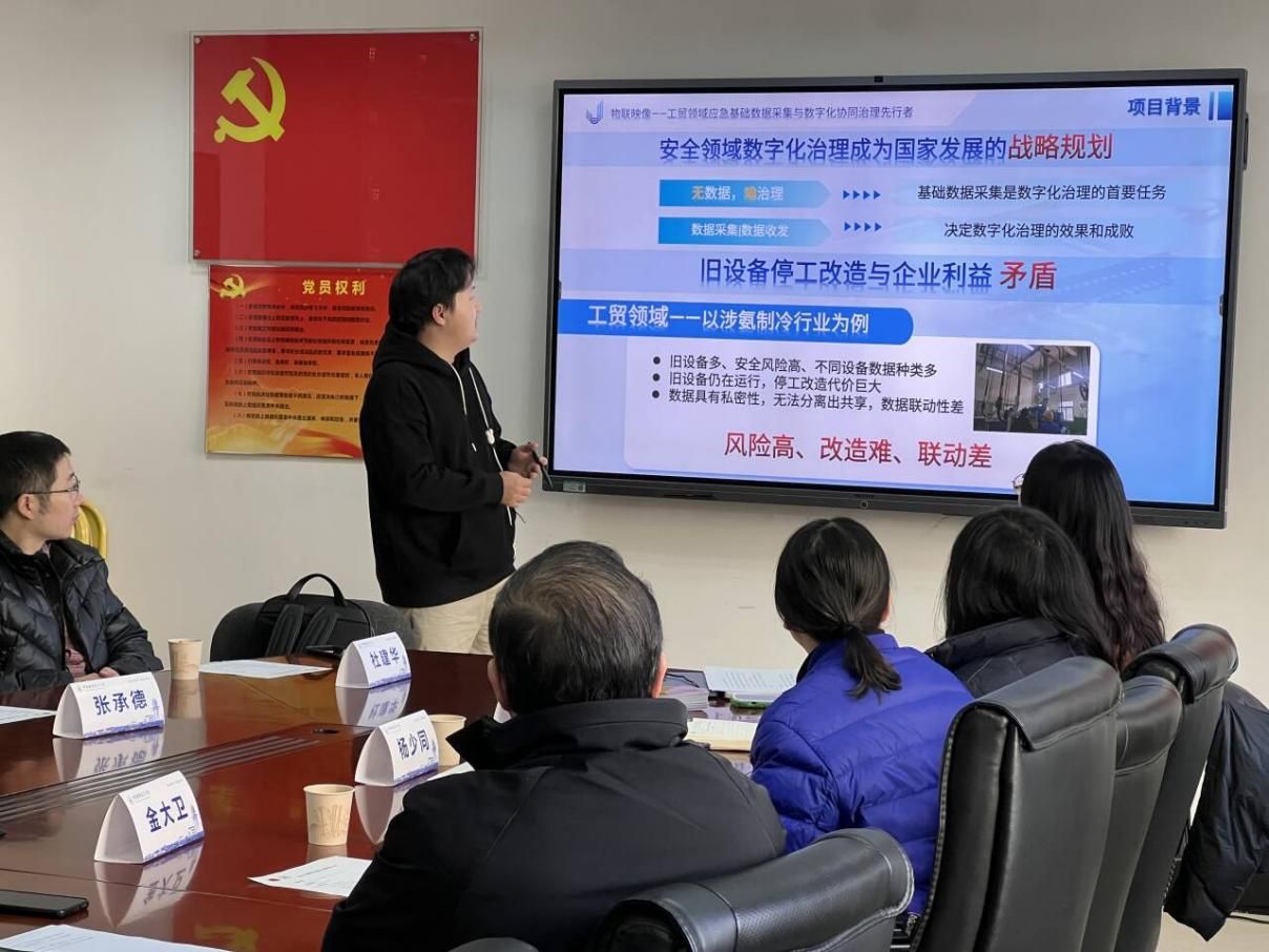 参会的5支团队员工代表和指导老师分别针对项目情况进行了汇报和经验分享。首先,物联映像团队项目负责人周舟同学从项目的背景、意义、实施方法、取得成果等方面介绍项目在工贸领域应急基础数据处理和数字化协同治理中取得的成绩,表达了他们“铸天下广厦,庇天下黎明”的核心理念,随后项目指导老师杜建华老师从成果积累、专利论文、团队协作等多方面分享了互联网+大赛的比赛经验。