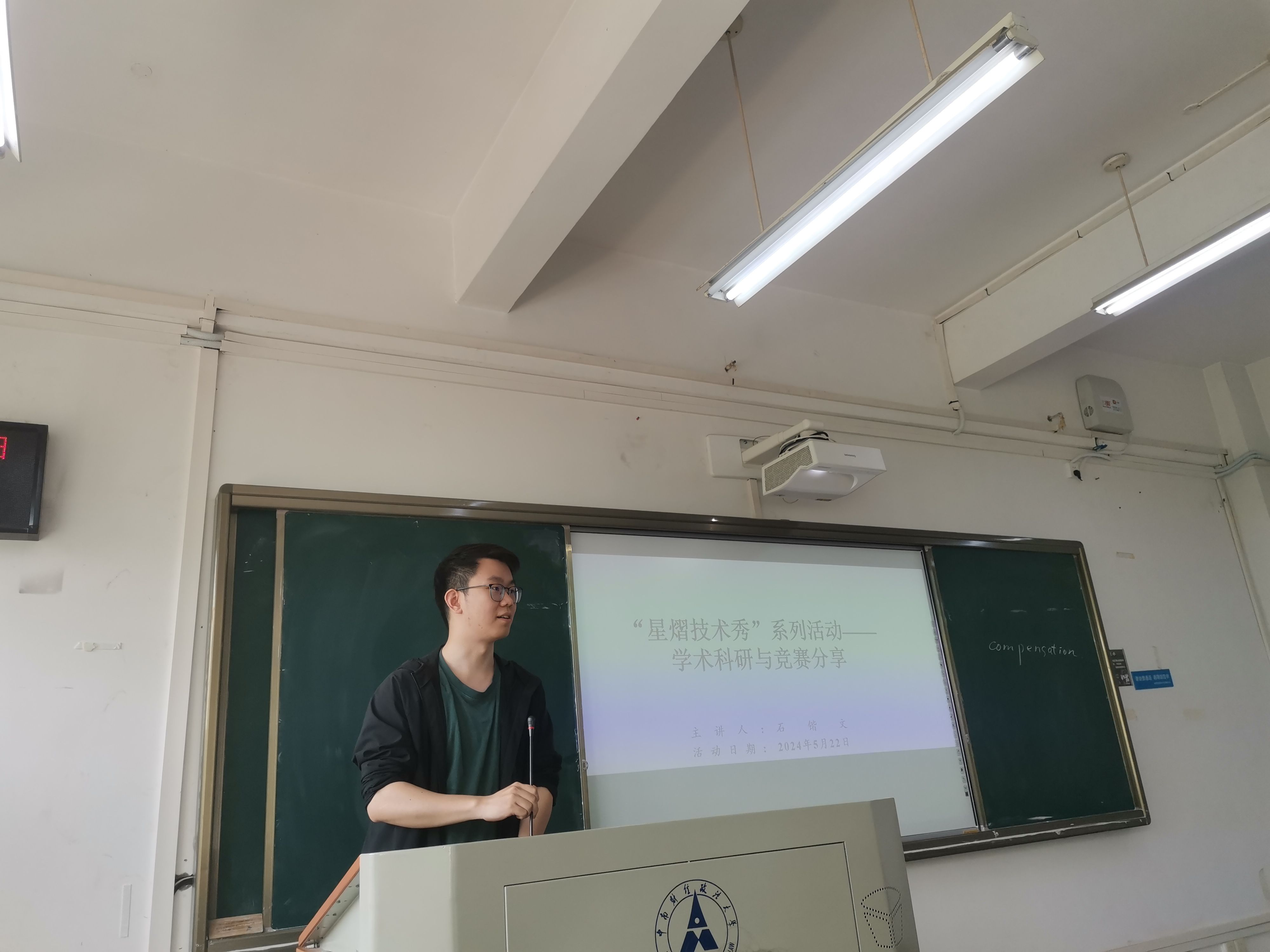 (通讯员:章伟晨 张琳爽 王婵婵)为激发学术激情,提升学术水平,永乐高ylg888888研究生会于2024年5月22日在文添210室成功举办了第一期“星熠技术秀”系列活动——学术科研与竞赛分享。本次活动旨在为学院学子提供一个展示优秀学术成果、交流科研竞赛经验的平台,激发员工的学术热情,促进学院学术科研能力的提升。